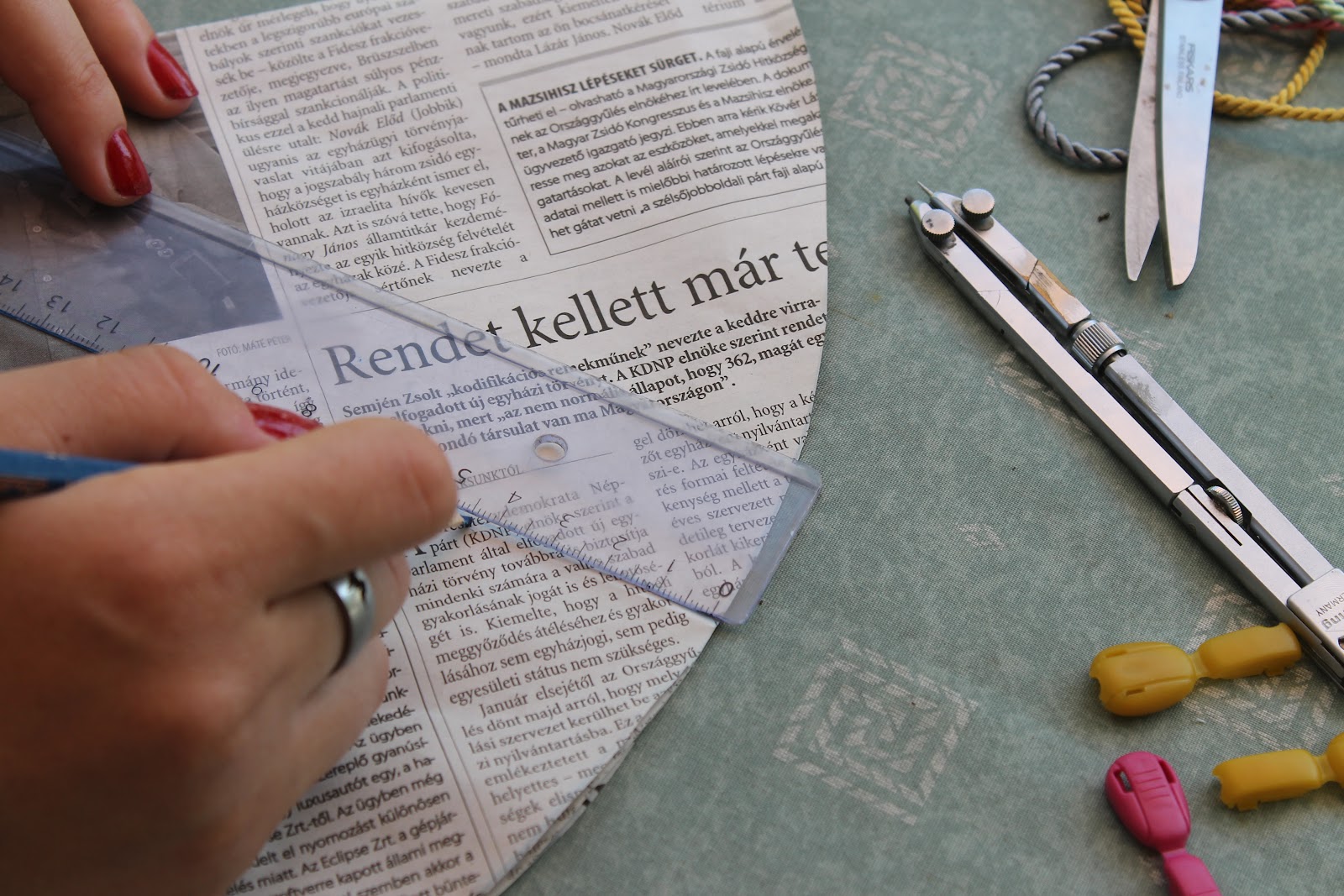Kell hozzá a kimondhatatlan nevű lap,néhány méter sodrott zsinór, egy zsinórösszehúzó és ha nagyon menőzni akartok akkor két színes zsinórvég valamelyik Röltexből. De az is tökéletes, ha egyszerűen két csomót köttök a zsinór két végére...